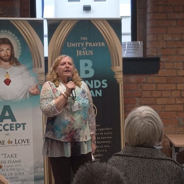 The Spiritual Diary of Elizabeth Kindleman was flying off the shelf at our literature table, and we sold out of all our Flame of Love candles and mugs. We also launched our new bi fold prayer card with both the Unity prayer and the Fol Haily Mary on it. Thanks to Marie for working on the literature stall all day long as well as helping in many other ways.